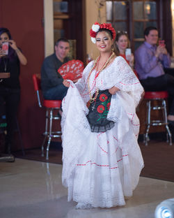 The show was at Alamo Tamales giving the guests an immersive experience into the life of Alantude. Complete with 10 foot tall dancing puppets as you walk in. Tamales for dinner. Piñatas all over the ceiling. Ballet Folklorico intermission. And ended the night with Mariachi and a party to celebrate the designer's mother's 50th birthday.